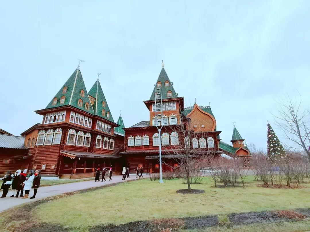 下一站是卡洛明斯克莊園,它擁有“世界第八大奇跡”的美譽(yù),主宮殿由全木質(zhì)結(jié)構(gòu)并采用榫卯原理建成,共有270個(gè)房間和3000扇窗戶,絕對(duì)是工藝的極高造詣。這時(shí)天上零星下起了小雪,為行程帶來了幾分美意。