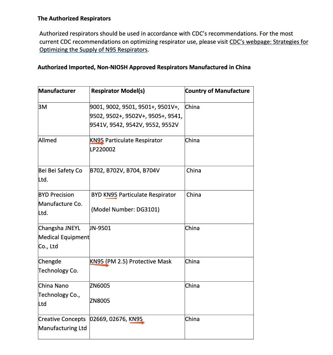 文件顯示,在這些獲得緊急使用授權的企業(yè)中,使用中國KN95標準生產口罩的達到26家。