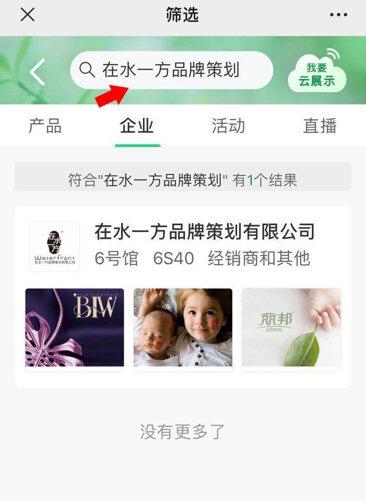 四、選擇“企業(yè)”這個選項,在搜索框里輸入“在水一方品牌策劃” 搜索