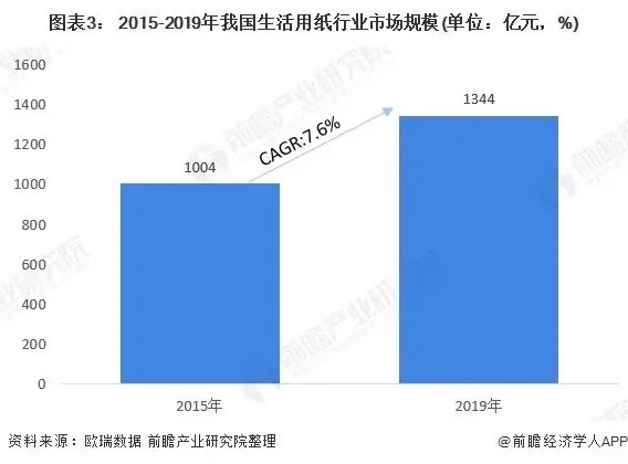 這一時期中國經(jīng)濟運行總體平穩(wěn)、穩(wěn)中有進,中國生活用紙市場在此大背景下繼續(xù)保持穩(wěn)定增長,行業(yè)規(guī)模從2015年的1004億元人民幣,增長到2019年的1344億元人民幣,CAGR為7.6%。