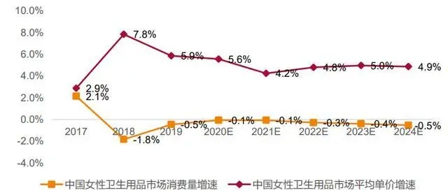 2017-2024年中國女性衛(wèi)生用品市場規(guī)模量價拆分