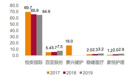 從女性衛(wèi)生用品業(yè)務(wù)的規(guī)模體量來看,恒安國際最高,景興健護(hù)次之,豪悅護(hù)理(代工模式)最小。2019年恒安、百亞、穩(wěn)健、豪悅的女性用品業(yè)務(wù)分別實現(xiàn)收入64.9/75/3.2/2.9億元,同比變化-2%/31%/37%/47%。從產(chǎn)能來看,景興健護(hù)采取委外模式,2019 年穩(wěn)健醫(yī)療產(chǎn)能增長較快為 38.9%;從產(chǎn)能利用率來看,2019年百亞股份和穩(wěn)健醫(yī)療均在 81%左右,豪悅護(hù)理的衛(wèi)生巾產(chǎn)能利用率為 48%,經(jīng)期褲為 130%。
