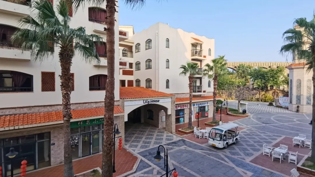 路途丈量著快樂,我們的目的地——漳州云霄金湯灣,提前于午后一刻在路旁迎接一方來客。稍事辦理入住手續(xù),觀光車送我們前往度假村卸下行李。