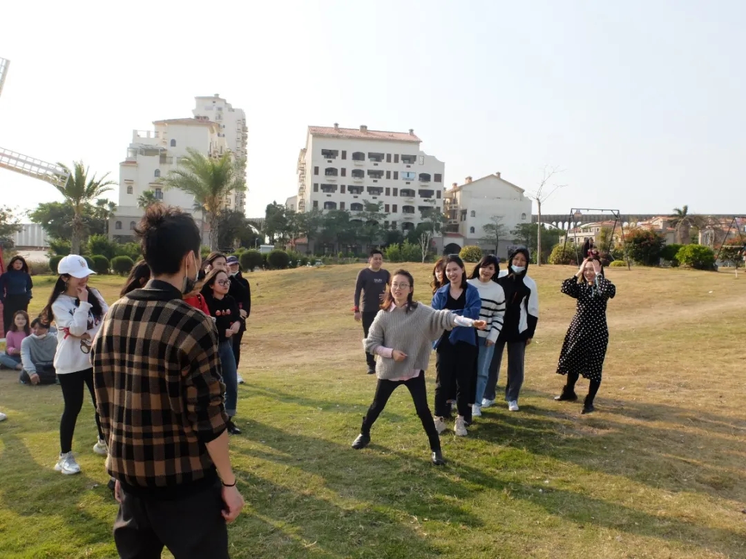 之后,就是集體活動時段。藍天和青草坪,延續(xù)著遙遠世界的風(fēng)景,此刻也聚集了所有的一方小伙伴。小伙伴們提前被劃分成四組,開始了斗智斗勇斗歡樂的環(huán)節(jié)。趣味指令、你比我猜和猜拳對擂賽依次進行,留下了一個個矯健的身影。草坪上回旋的是小伙伴們歡悅的笑聲,還有主持人耐心維持秩序的大嗓門。無辜的勝負欲,成了大家一致的情緒。幾輪游戲下來,還不熟絡(luò)的新同事已然走近彼此,有梗的,有趣的,有思想的,都是一方家人。