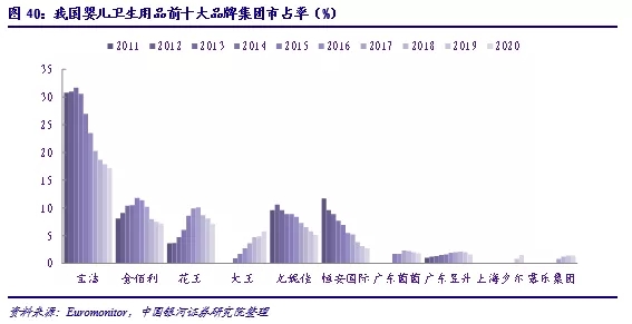 目前市場(chǎng)競(jìng)爭(zhēng)格局的變化說明我國嬰兒衛(wèi)生用品市場(chǎng)尚未成熟,仍存在發(fā)展的較大空間,在消費(fèi)升級(jí)和市場(chǎng)體量擴(kuò)張下外資企業(yè)和國內(nèi)新銳企業(yè)都有規(guī)模增長、擴(kuò)張市場(chǎng)份額的機(jī)會(huì)。短期內(nèi)我國嬰兒衛(wèi)生用品市場(chǎng)的行業(yè)集中度可能不會(huì)快速回升,新銳品牌的加入推動(dòng)了產(chǎn)品升級(jí)也給行業(yè)帶來了活力和更多競(jìng)爭(zhēng),國產(chǎn)品牌具有本土化的電商營銷能力與新渠道把控力,以及適應(yīng)性更強(qiáng)的新品迭代能力,因此和外資品牌的拉鋸戰(zhàn)可能會(huì)持續(xù)進(jìn)行。長期來看,參考女性衛(wèi)生用品市場(chǎng)的發(fā)展路徑,市場(chǎng)成熟后外資品牌的品牌效應(yīng)會(huì)逐步顯現(xiàn),未能成功樹立品牌影響力的國產(chǎn)新銳品牌或?qū)⒅鸩酵顺鍪袌?chǎng),行業(yè)屆時(shí)將再次向龍頭集中聚攏。